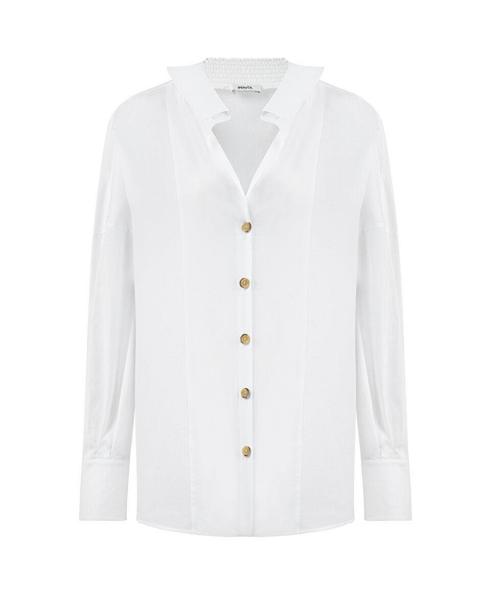 Zarif ve şık duruşuyla Beyaz Düğme Detaylı Kadın Gömlek, dolabınızın kurtarıcı parçalarından biri olacak! 🤍✨
