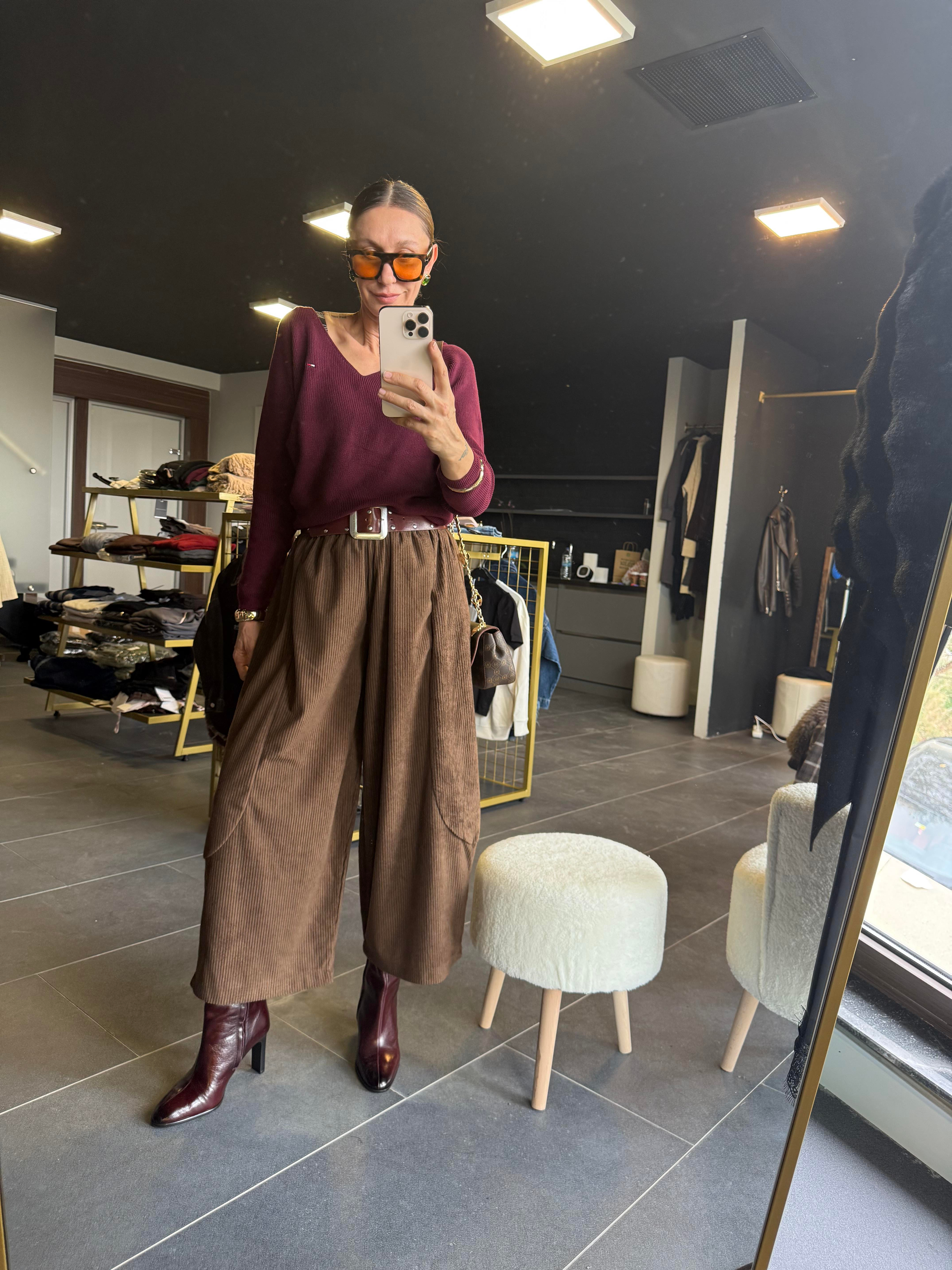 Kahve Şalvar Kadife Pantolon