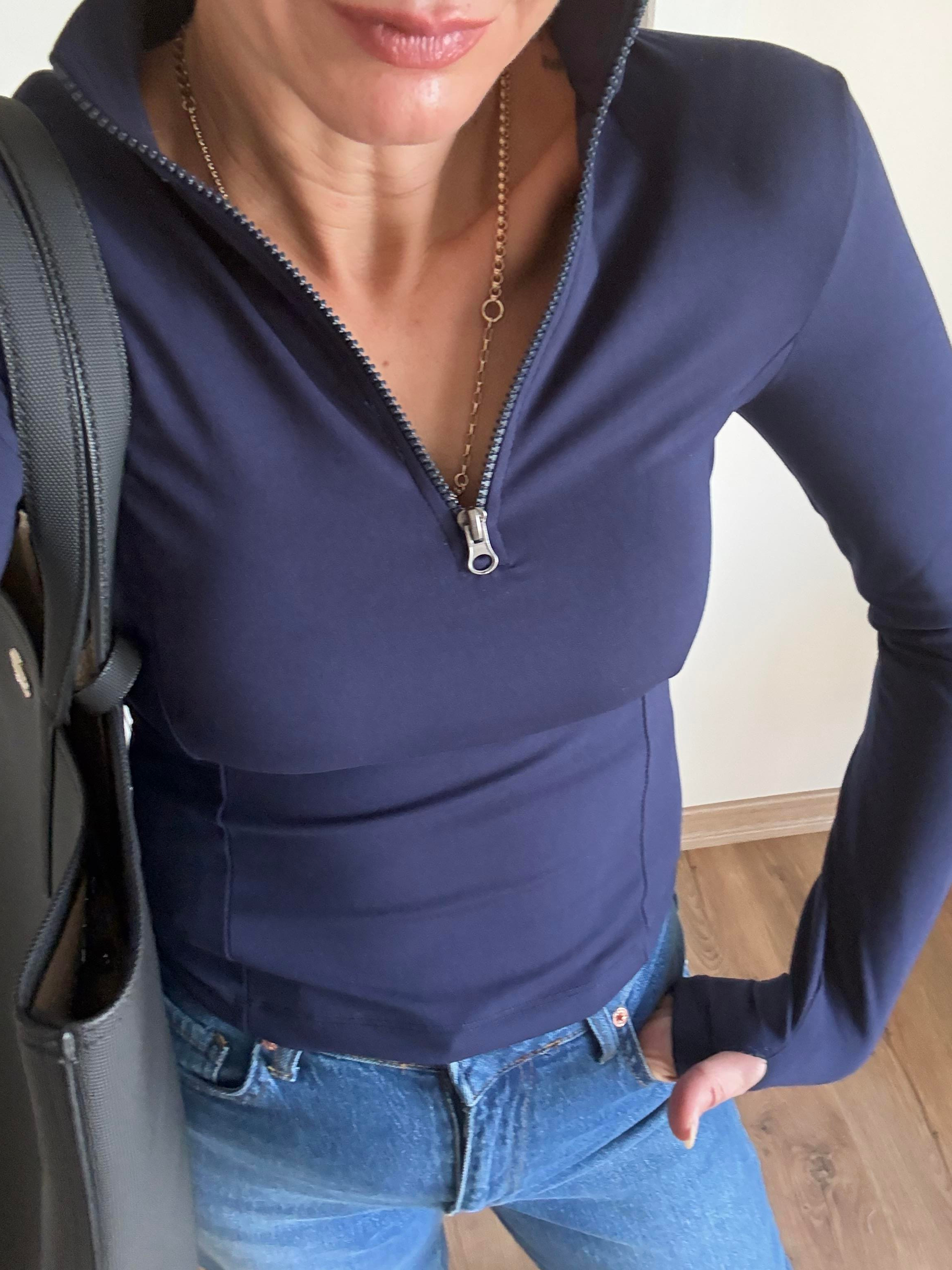 %100 polyemid elastan. Tam kalıp çift cepli. Marka baskılı yarım fermuarlı parmak geçirmeli. Ara bedenler bir beden büyük.