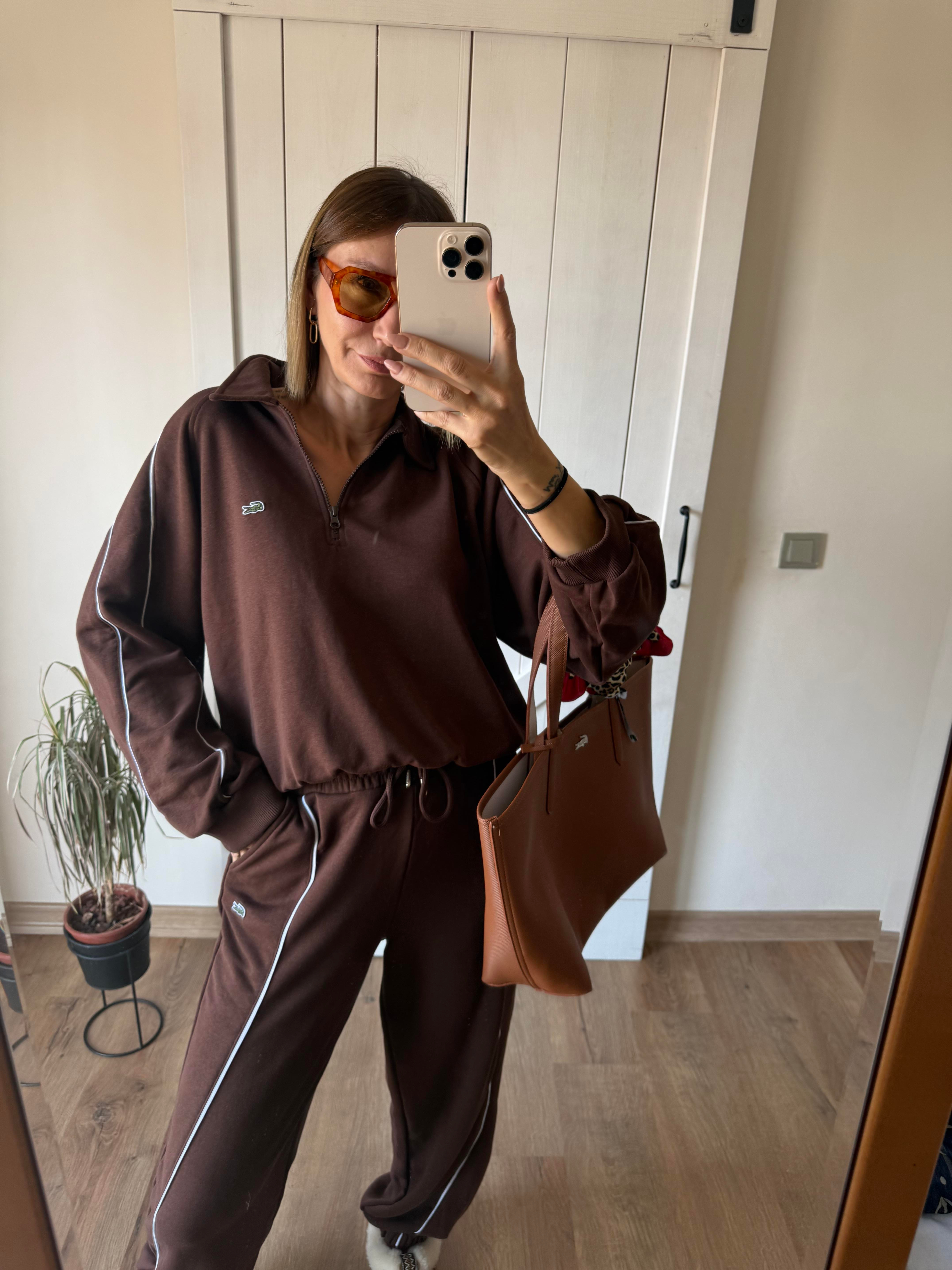 Şeritli Kahve Üst Alt Eşofman Takım (Eşofman takı )