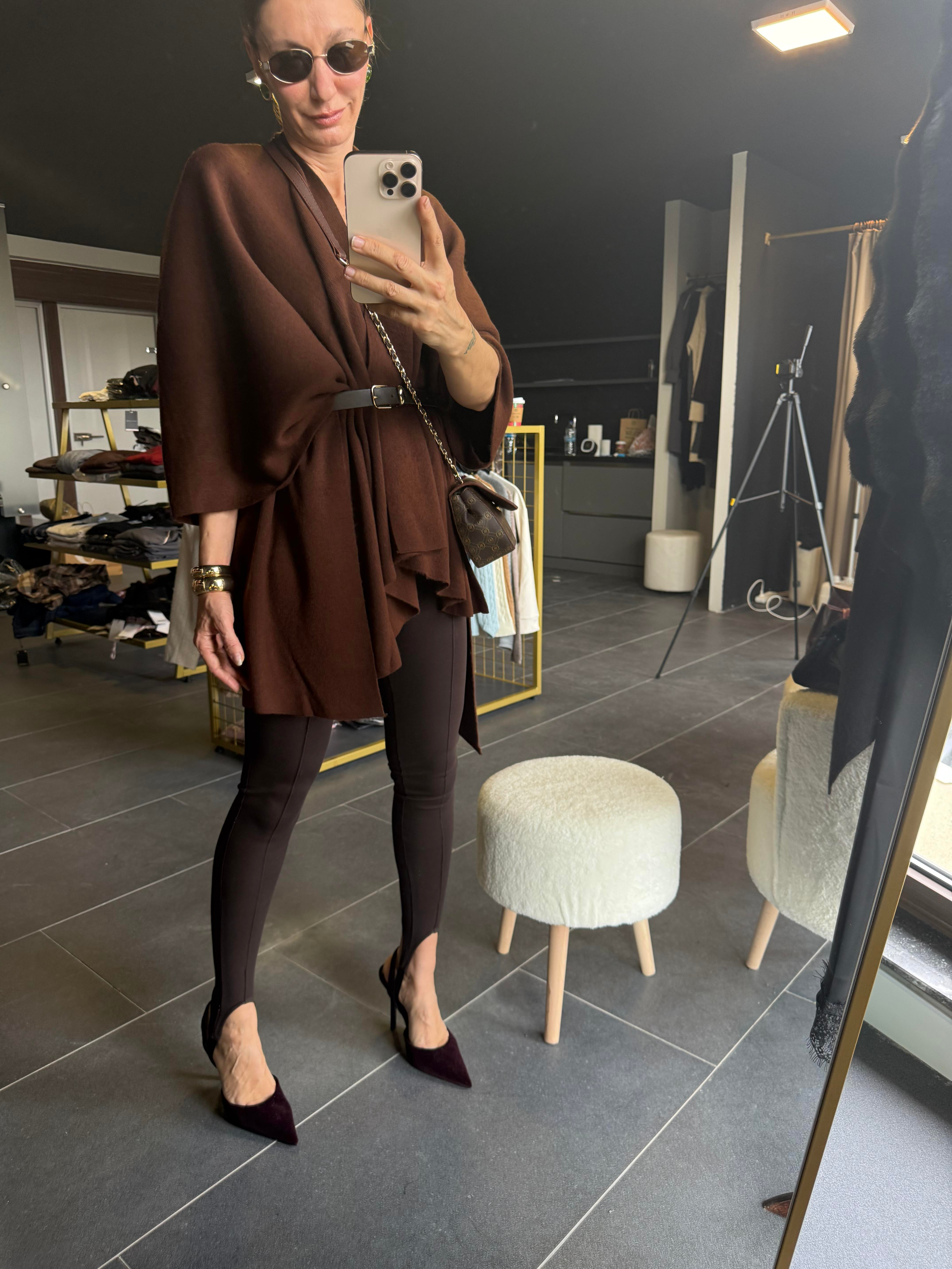 Topuk Lastikli Kahve Önden Çimalı Tayt (Tayt)