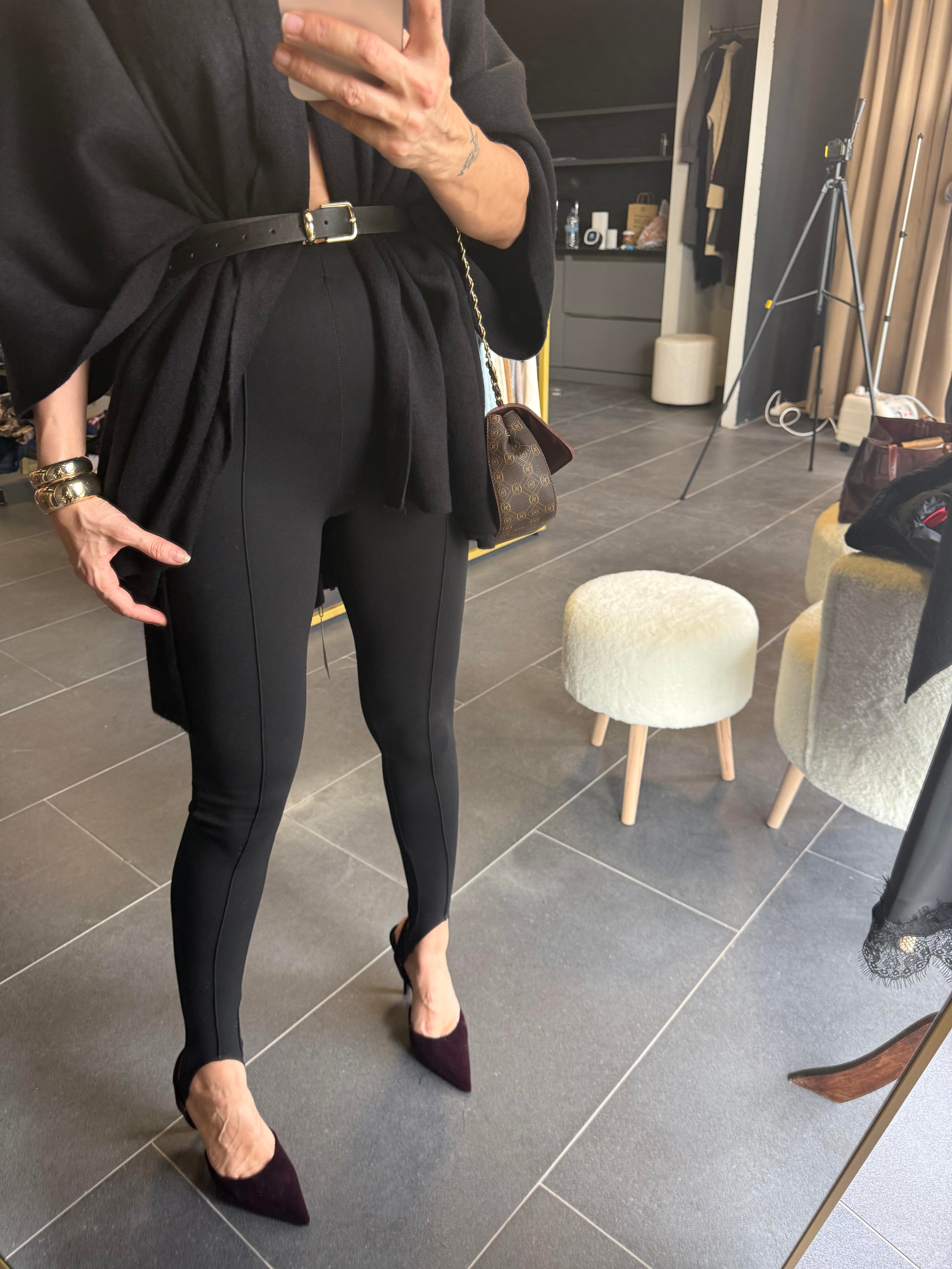 Topuk Lastikli Siyah Önden Çimalı Tayt