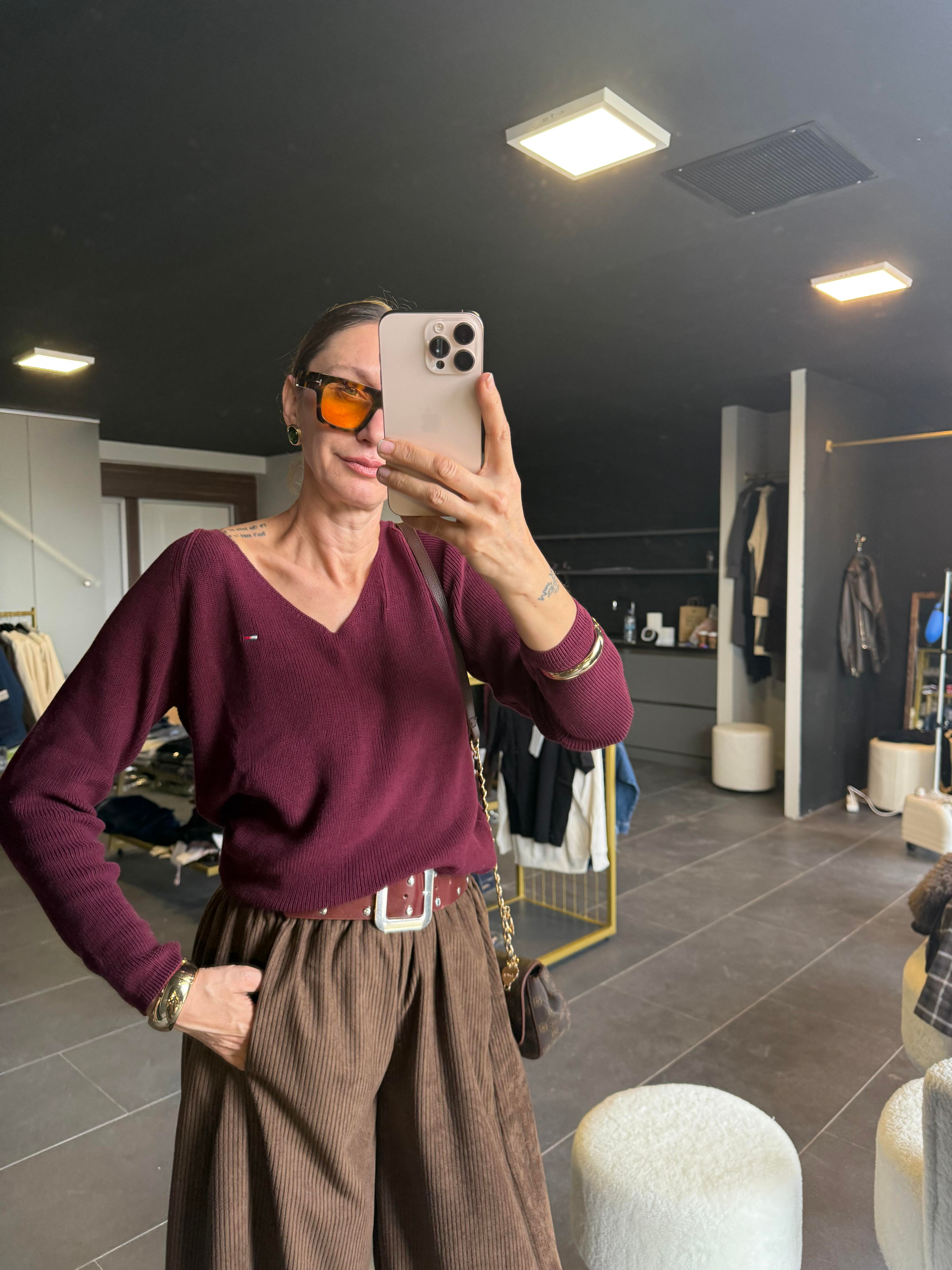 V yaka triko. Pamuklu kumaş etiketli kartlı