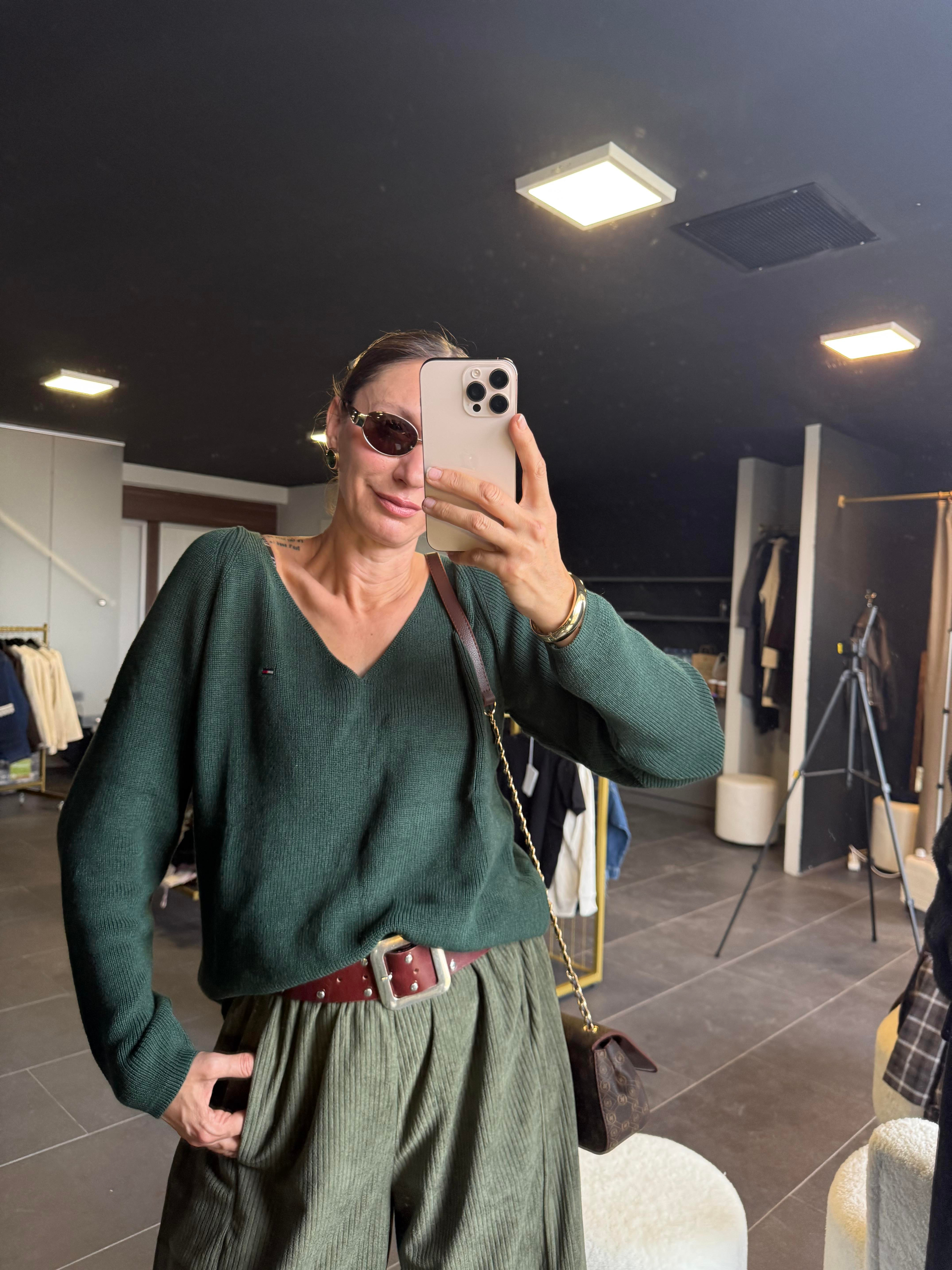 V yaka triko. Pamuklu kumaş etiketli kartlı