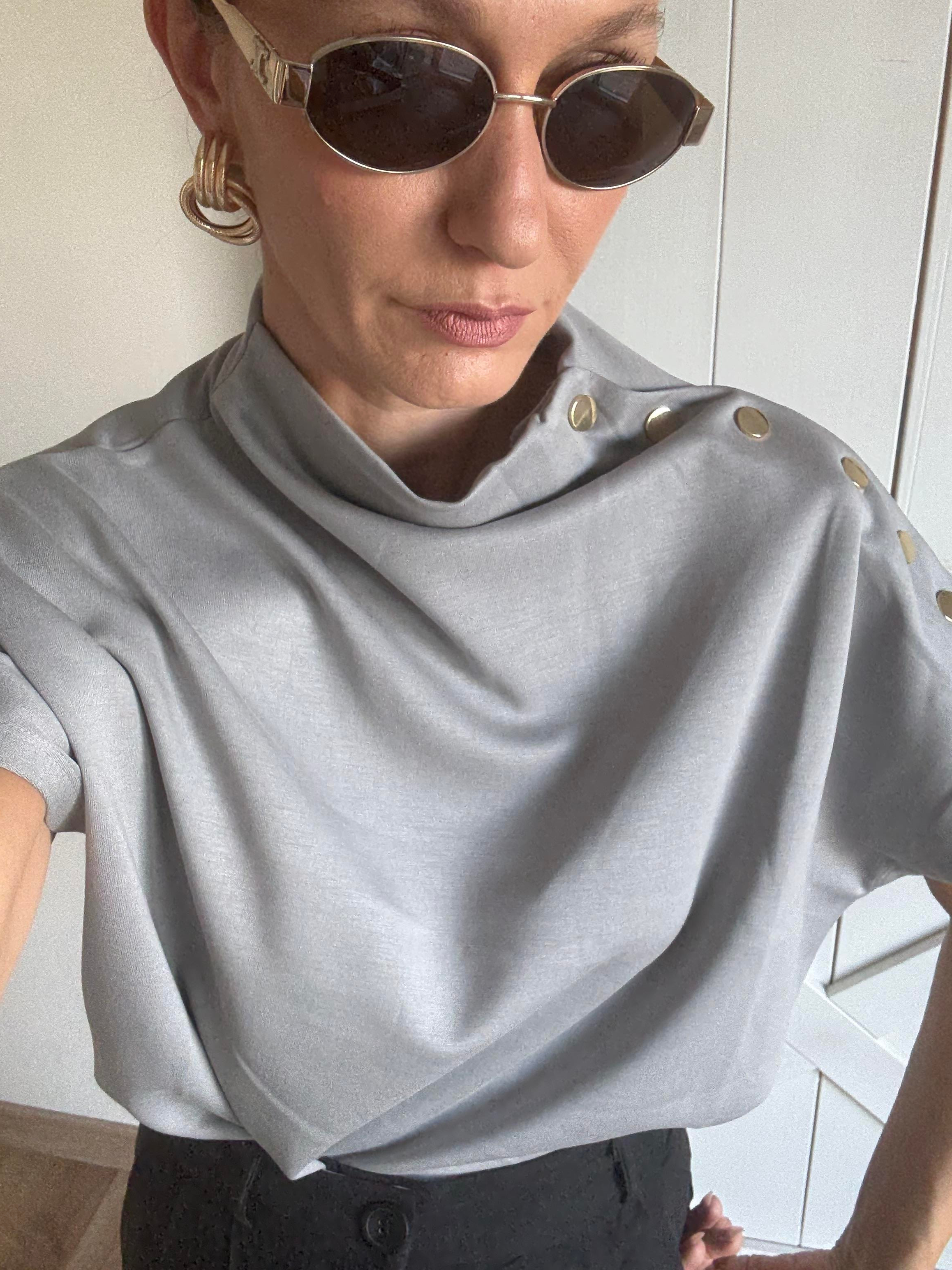 Çıtçıt Detaylı Gri Bluz (bluz)