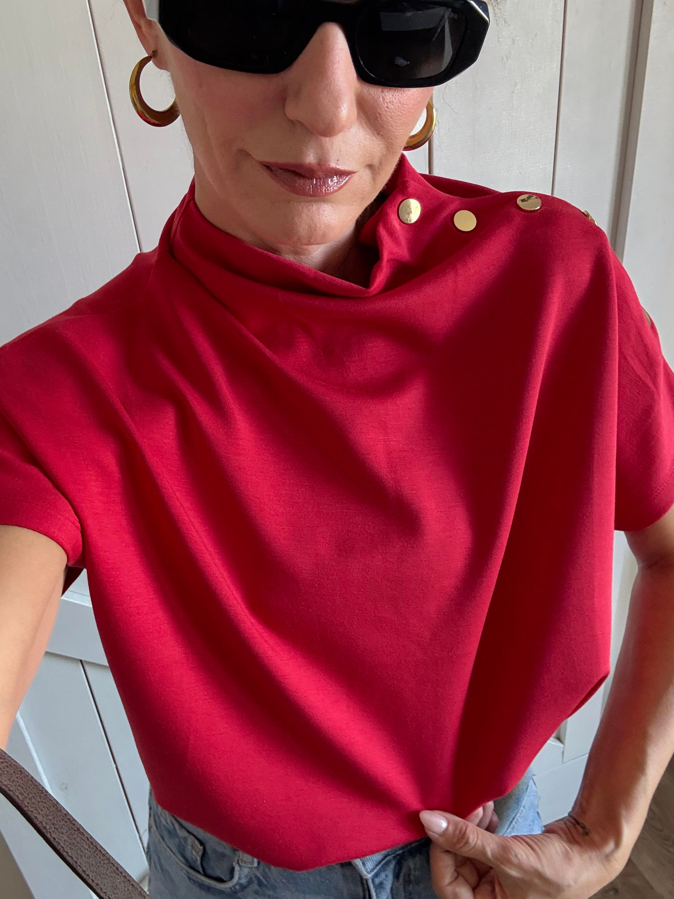 Kırmızı Çıtçıt Detaylı Bluz (bluz)