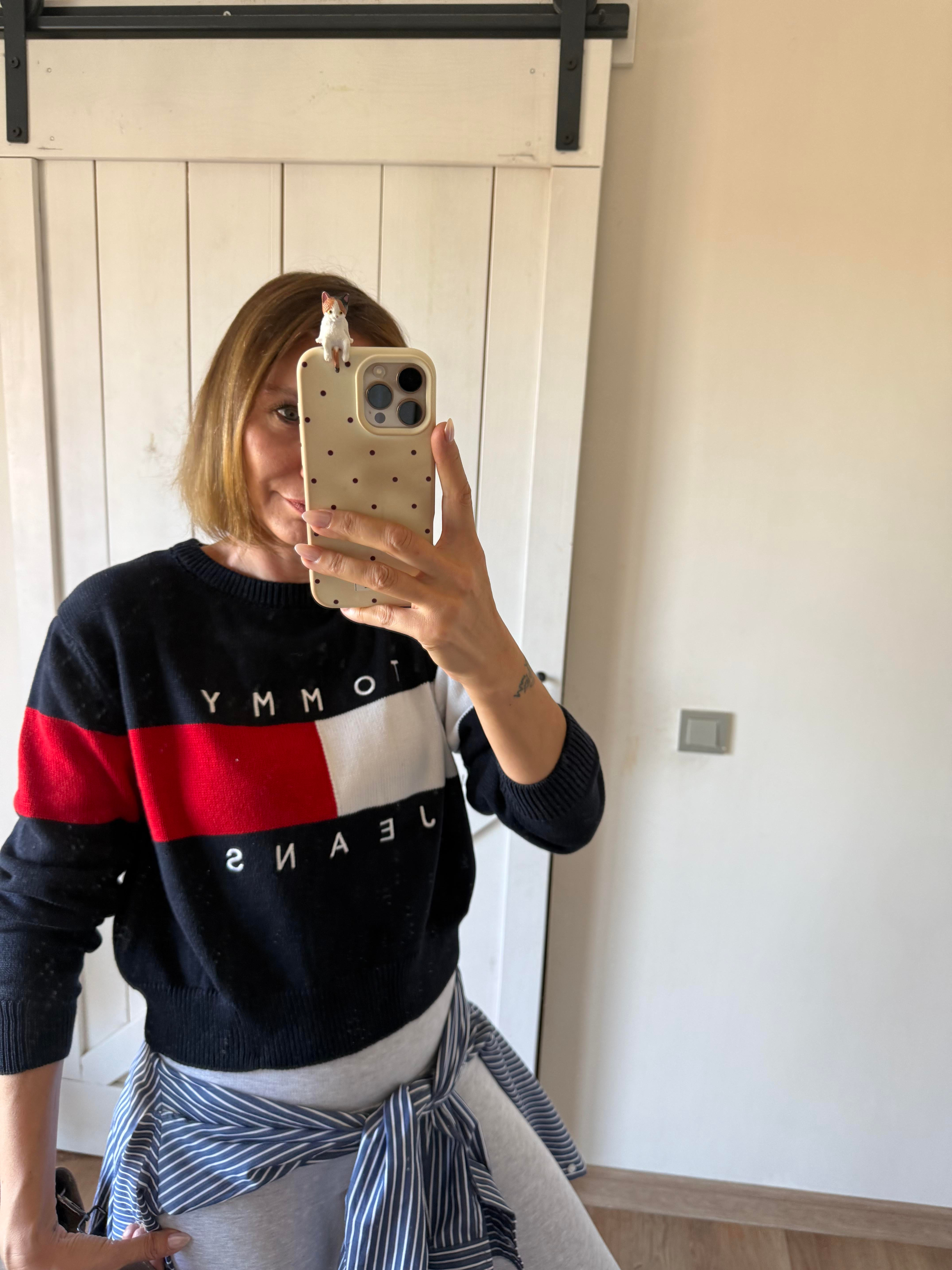 Lacivert Kırmızı Bisiklet Yaka Kazak