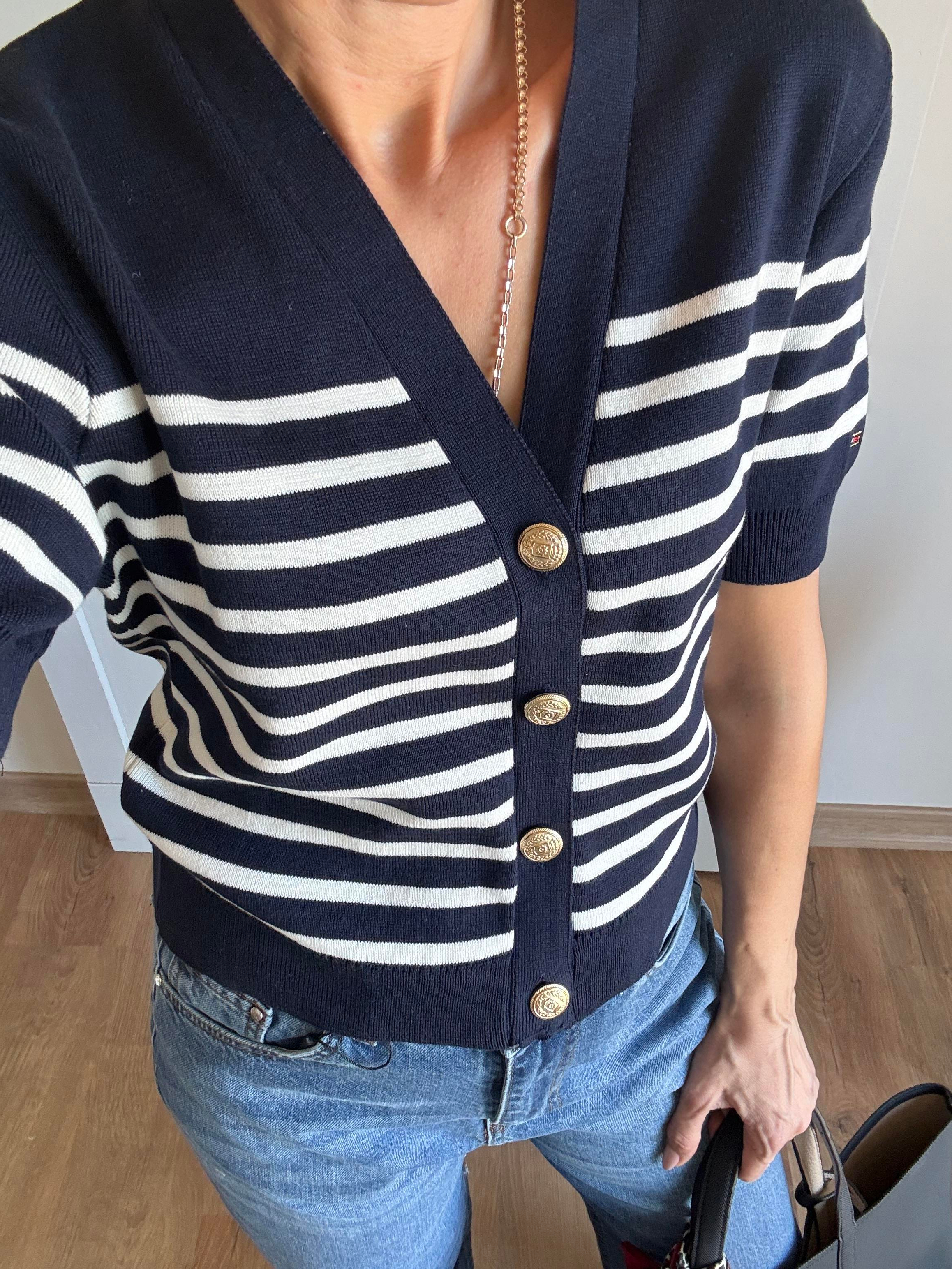 Lacivert Th Beyaz Çizgili Gold Düğmeli Hırka (hrk)