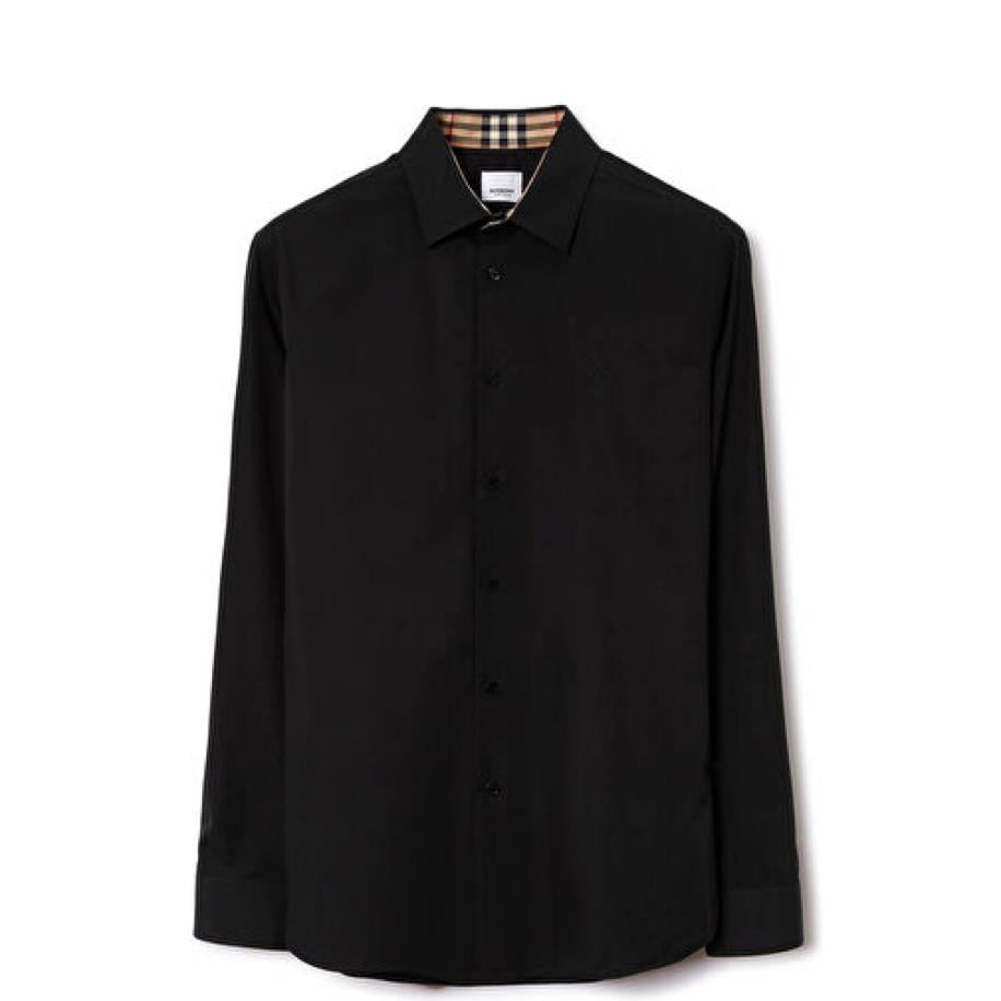 Yaka kısmı ve kol manşet ucu Brbry desen, logo işleme detaylı, %100 pamuklu point yaka lacivert gömlek. Regular fit-  Tam kalıptır.