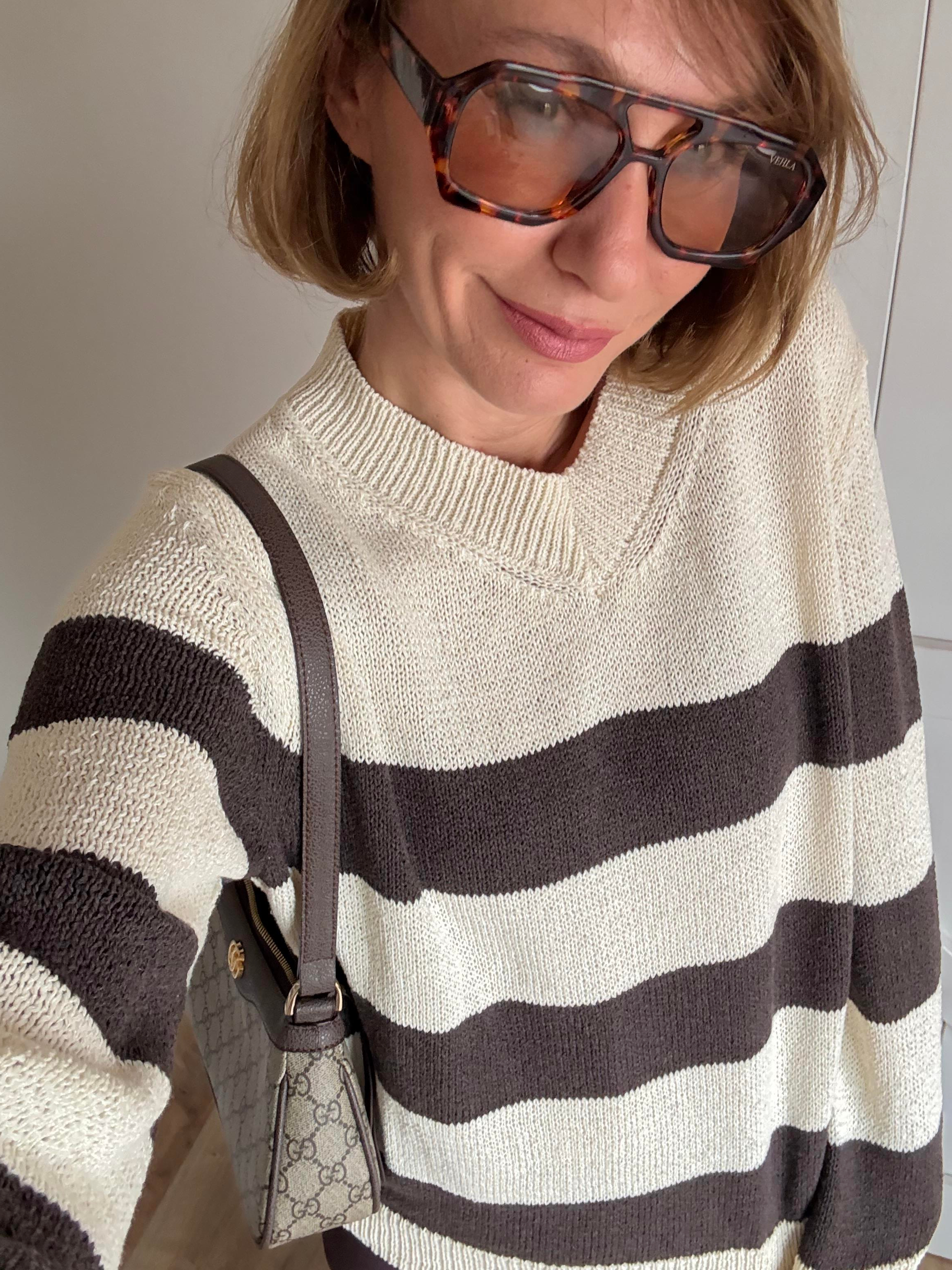 Merserize Kahve Çizgili V Yaka Massi Triko (triko)