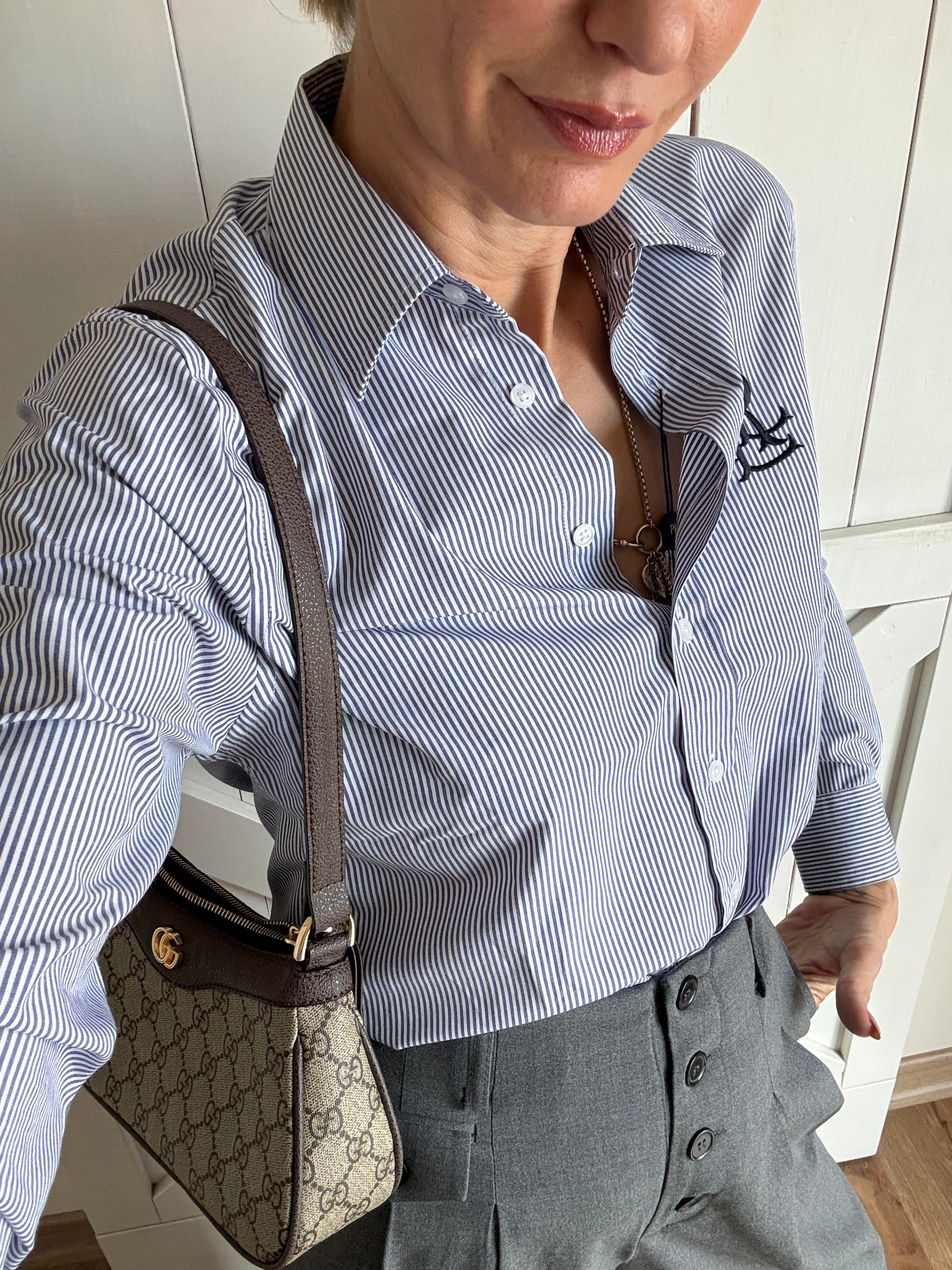 Nakış Detaylı Mavi İnce Çizgili Gömlek (Gmlk)