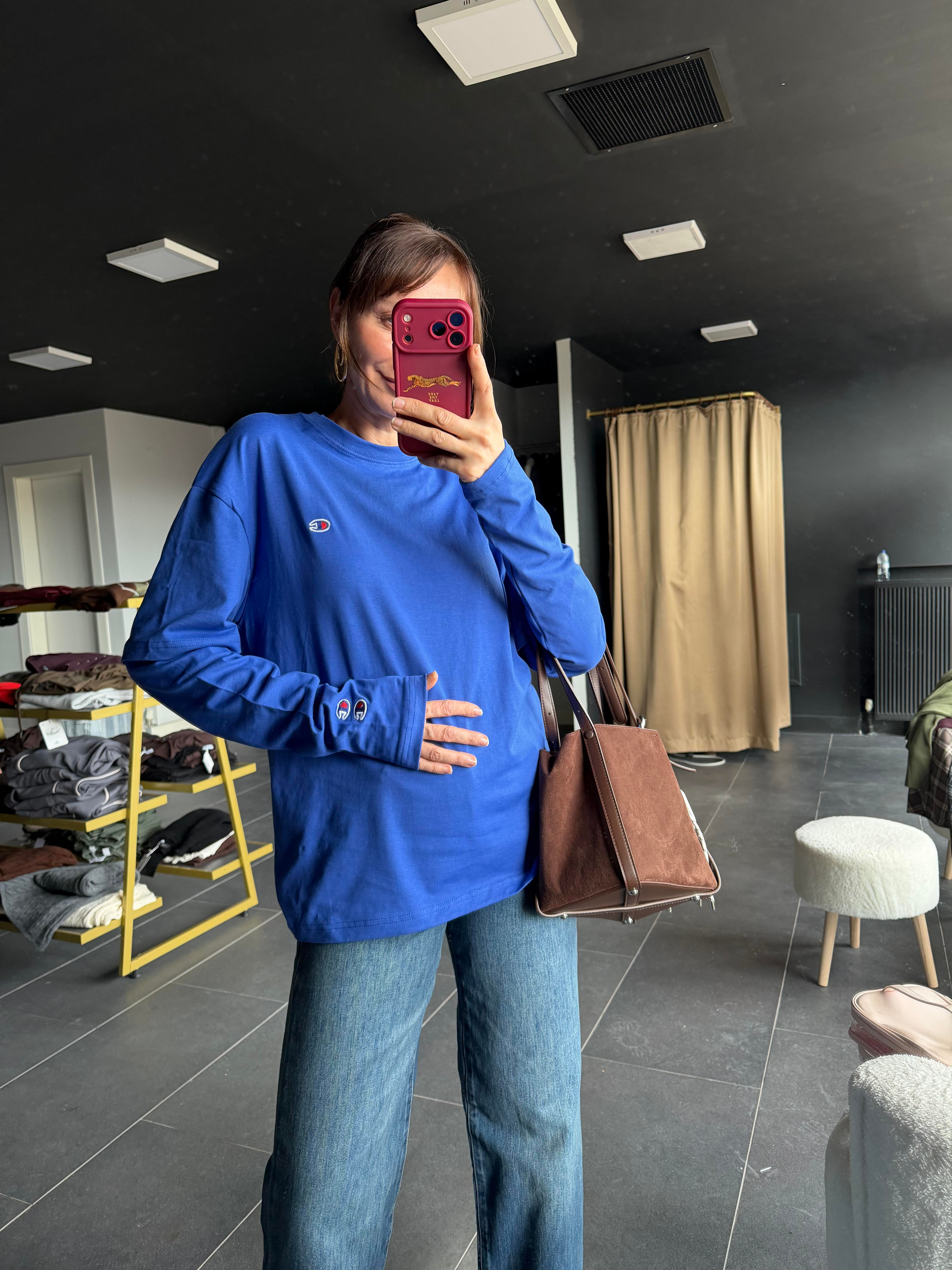 Şampiyon. Bisiklet yaka üstüne tshirt giydirilmiş izlenimli basic.