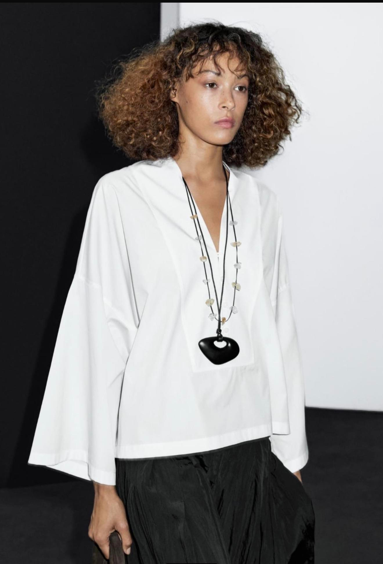 Yakası Şeritli Poplin Gömlek Bluz (Gmk)